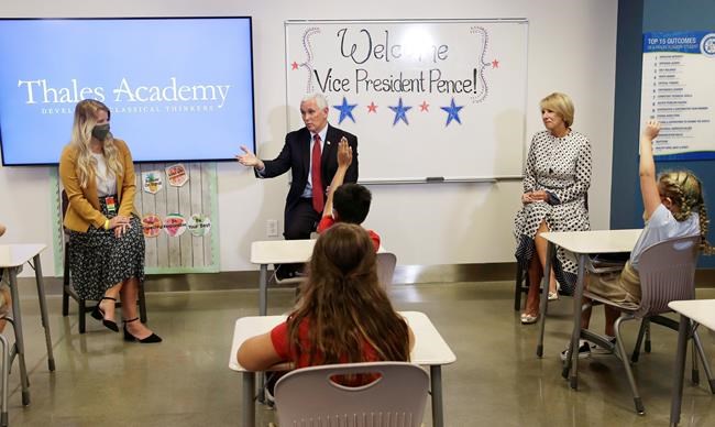 Accompanied by DeVos, Pence visited a Raleigh-area campus of Thales Academy as part of a push to encourage more schools to reopen with in-person instruction.