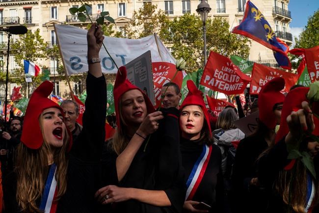 “Where is my dad?” read some signs as traditional Catholic groups, far-right activists and other marchers weaved from the Luxembourg Garden to the Montparnasse neighbourhood, passing by the French Senate.