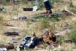 Furniture, appliances, bottles, cans and more piled across the one hectare section of Crown land on the side of the logging road leading up to Postill Lake Resort. Left behind by shooters who bring the items up to use as targets, they lie broken, some leaking dangerous chemicals into the ground.