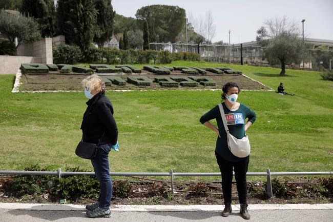 New restrictions approved Wednesday limit all those besides personnel deemed essential from venturing more that 100 metres (yards) from their homes, and all places of worship shuttered. In a recent surge, nearly 2,400 Israelis have been infected — up from just 100 two weeks ago — with 39 in serious condition. Five Israelis, all over the age of 65, with pre-existing medical conditions have died.