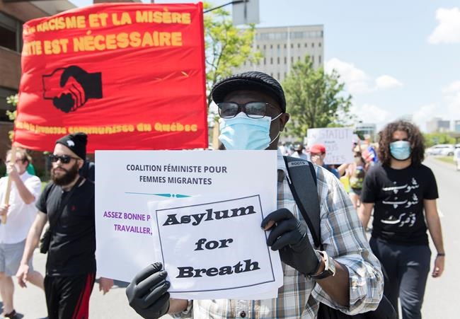 MONTREAL – Demonstrators were back in front of the prime minister’s riding office in Montreal on Saturday, demanding a firm commitment from the federal and provincial governments for asylum seekers working on Quebec’s COVID-19 front lines.