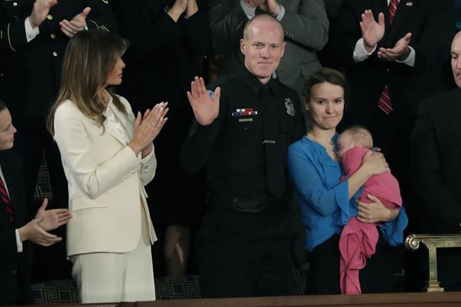 SANTA FE, N.M. (AP) — A New Mexico police officer who adopted a child from a pregnant woman he found using heroin in what has been held up as an alternative to abortion is pictured in uniform on an anti-abortion billboard without his permission, his superiors say.