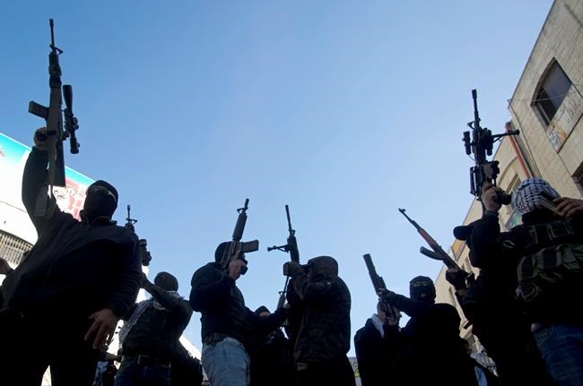 Around a dozen masked men led the march through Ramallah, firing several rounds of gunfire into the air. Similar marches are planned elsewhere in the West Bank in the coming days.