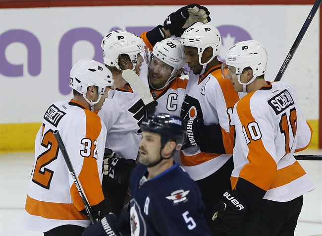 Jets forward Alexander Burmistrov was off for tripping when Giroux made a short pass to Schenn in the face-off circle and he fired a one-timer past Pavelec.