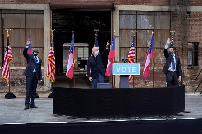 Fresh off the Electoral College affirming his victory, Biden campaigned alongside Jon Ossoff and the Rev. Raphael Warnock as they try to unseat Republican Sens. David Perdue and Kelly Loeffler in Jan. 5 runoff elections that will determine which party controls the Senate. The president-elect, who won Georgia in November, warned that Republican victories would leave him to face the kind of GOP obstruction that hampered former President Barack Obama for most of his two terms.