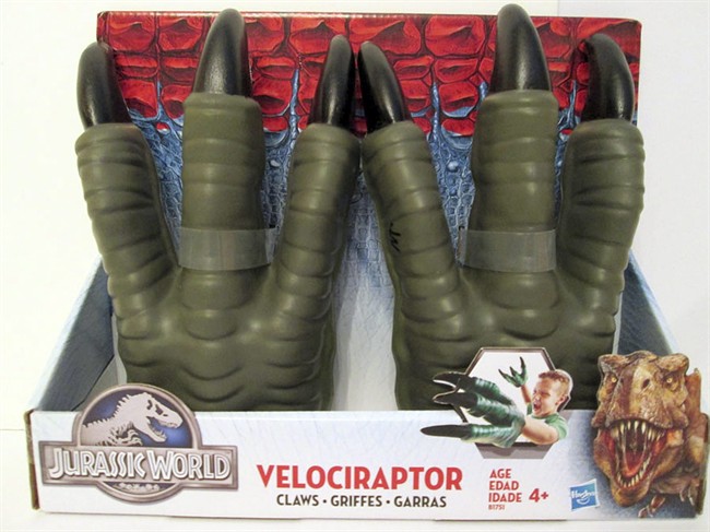 — Jurassic World velociraptor claws. Potential for eye and facial injuries; by Hasbro; $19.99.