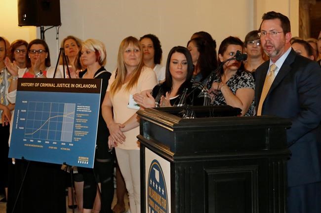 “This is a pivotal moment in Oklahoma history,” said Steele, flanked by dozens of women from a program in Tulsa that helps them adjust to life outside of prison. “We have the right people in place. Now is the time to act.”