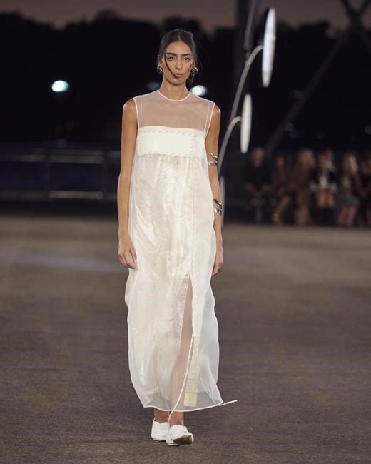 “To have a space like this with the sunset and just have something that was vast for the collection, I really wanted it to be focused, but have the space just sort of enhance it in a subtle way,” Burch told the Associated Press in an interview after the show.