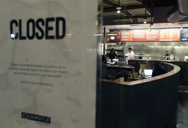 Chipotle Mexican Grill Inc., based in Denver, has more than 1,900 locations, primarily in the U.S. The company has already warned that sales are expected to fall as much as 11 per cent at established locations for the fourth quarter as a result of bad publicity from the E. coli cases.
