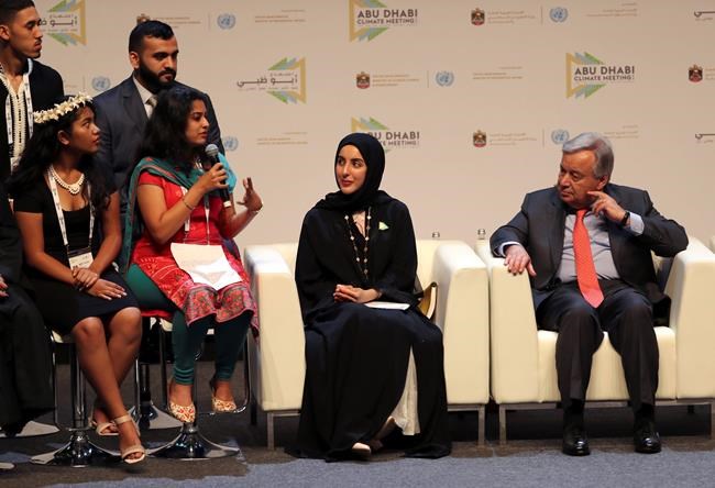 He spoke at the opulent Emirates Palace, where Abu Dhabi was hosting a preparatory meeting for the U.N. Climate Action Summit in September. Guterres was expected to later take a helicopter ride to view Abu Dhabi’s Noor solar power plant.