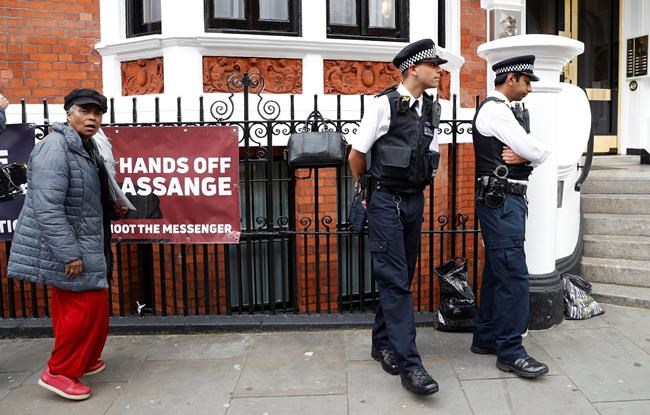 Assange, 47, was arrested on April 11 after being handed over to British authorities by Ecuador. He is serving a 50-week sentence in a London prison for skipping bail while the U.S. seeks his extradition for conspiring to hack into military computers and spill secrets about U.S. operations in Iraq and Afghanistan.