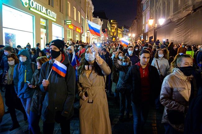 But overall, OVD-Info tallied more than 1,900 arrests Wednesday night, with more than 800 in St. Petersburg. While some violent detentions, with police using stun guns, were reported in St. Petersburg, in many cities the demonstrations went on without clashes with law enforcement.