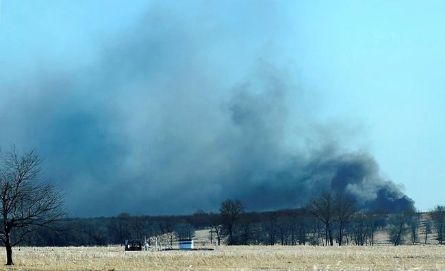 The blast happened Monday morning at a drilling site near Quinton, about 100 miles (161 kilometres) southeast of Tulsa. The explosion sent plumes of black smoke into the air and left a derrick crumpled on the ground. For much of the day Monday, emergency officials were unable to get near the rig because the fire was still burning.
