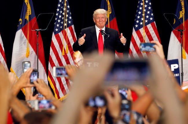 Trump says at a rally in Charlotte that Clinton “sees communities of colour only as votes and not as human beings worthy of a better future.”