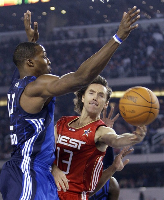 Before a back ailment derailed the better part of his final three seasons in the NBA, the 41-year-old Nash made eight all-star appearances: 2002-03, 2005-08, 2010 and 2012. One memorable moment was the 2005 Slam Dunk Contest in Denver, when his Phoenix Suns teammate Amare Stoudemire threw down a 360 alley-oop dunk off a soccer-style header from Nash.