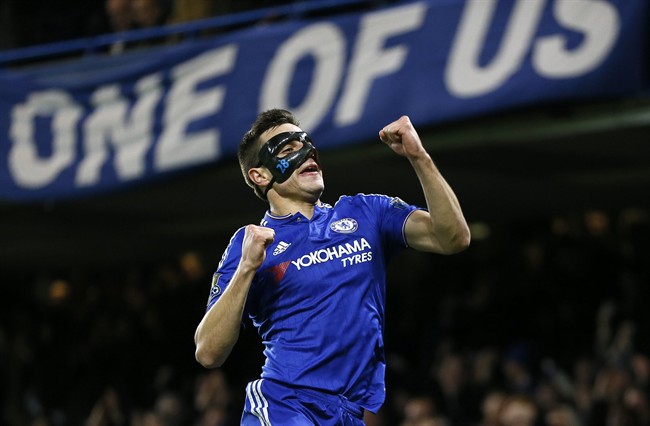 Unmissable with a protective black mask, Cesar Azpilicueta put Chelsea ahead after 20 minutes, turning in a low cross from Branislav Ivanovic.