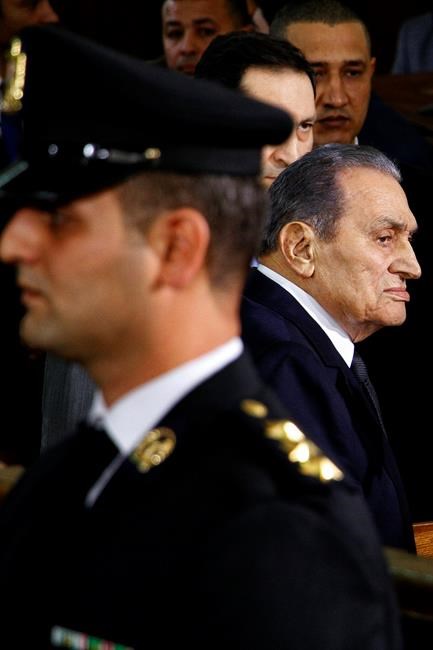 The 90-year-old Mubarak, whose nearly three-decade rule was ended by a popular uprising in 2011, entered the courtroom with his two sons Alaa and Gamal. He carried a cane and wore a dark blue suit and matching tie. He appeared physically well and mentally sharp though his speech was slow at times. Chief Judge Mohammed Sherin allowed Mubarak to take a seat while testifying.