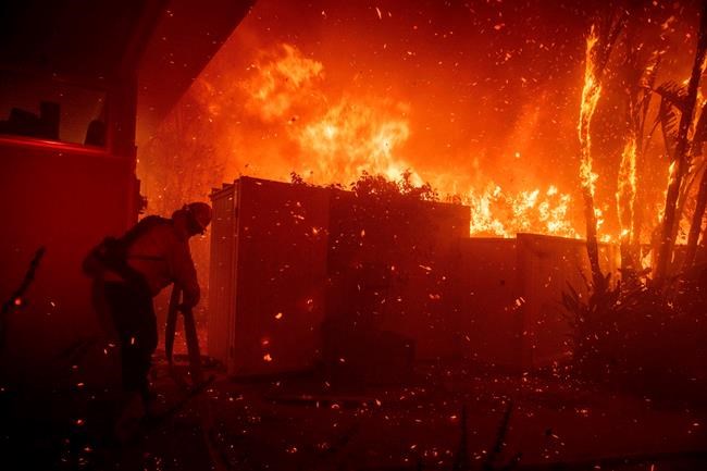 The fire erupted before dawn Monday on the western side of Interstate 405 in the Sepulveda Pass that passes through the Santa Monica Mountains and has burned through canyon and ridgeline neighbourhoods where some homes have burned.