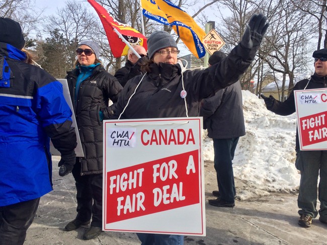 Workers donned tuques and snow pants on the picket line Saturday morning as temperatures dipped to -15 C with the wind chill.