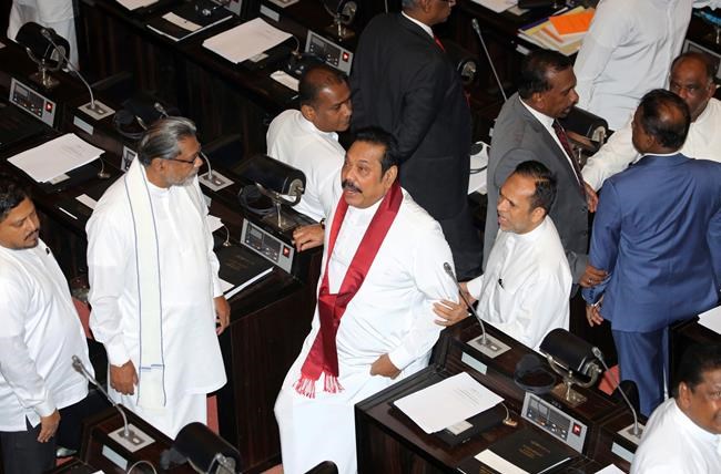 Sri Lanka has been in a political crisis since Oct. 26, when President Maithripala Sirisena abruptly sacked Prime Minister Ranil Wickremesinghe and appointed Rajapaksa. Wickremesinghe says he still has the support of a majority in Parliament.