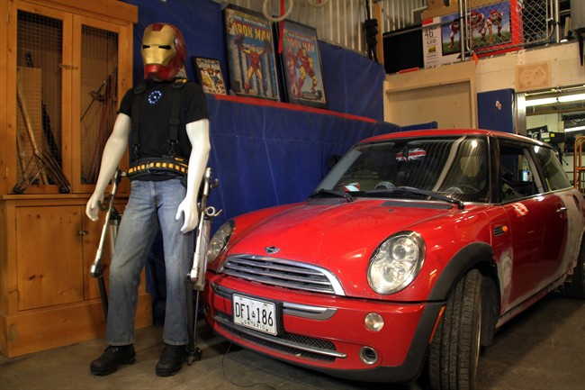 KITCHENER, Ont. – A Canadian inventor, who says he was “definitely” inspired by the comic hero Iron Man, has demonstrated a homemade exoskeleton by lifting a car for a German TV crew.