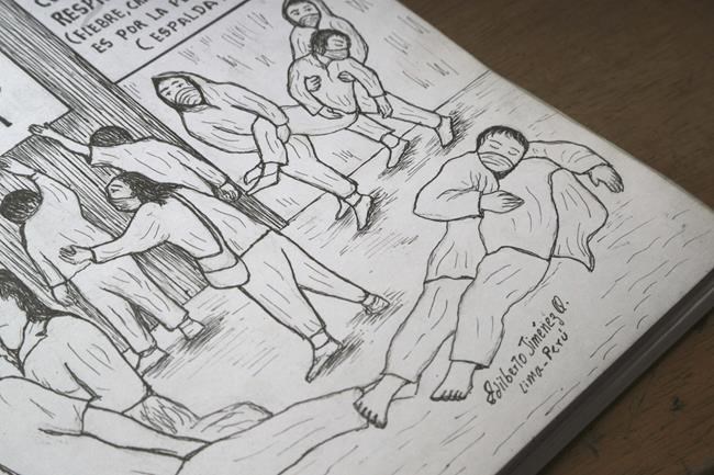 LIMA, Peru (AP) — With a pencil and a notebook, artist Edilberto Jiménez walks the streets of Lima and cities in the Andes mountains collecting stories and images about the coronavirus health crisis that has devastated Peru.