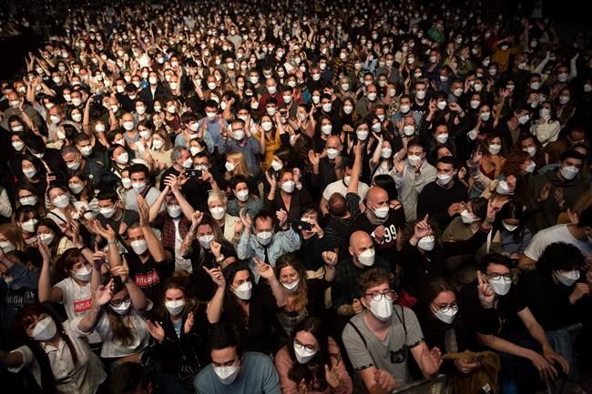 BARCELONA, Spain – Mid-sized cultural events could be held without social distancing — but with other precautions — after a pilot concert attended by 4,500 mask-wearing Spaniards who’d been screened for COVID-19 produced no significant outbreaks, event organizers argued Tuesday.