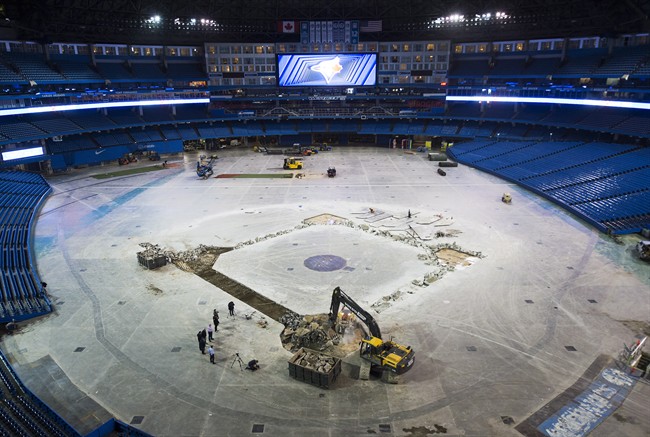 Work began on the stadium’s new all-dirt infield on Wednesday with drills and an excavator breaking up the concrete floor of the Toronto Blue Jays’ home. It’s the first step in a months-long process that will see Rogers Centre shift its focus into a baseball-first facility.