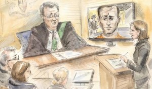 After a sweep by the police dog, an officer took a package wrapped in Christmas paper from behind a pile of firewood.