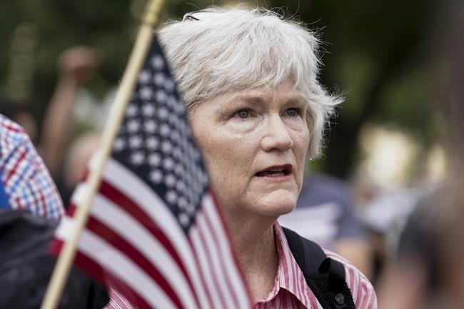 Among the rally speakers was the girlfriend of Jonathan Mellis, who was seen on camera on Jan. 6 using a stick to attack officers who were outside the Capitol trying to hold back the mob, authorities said.