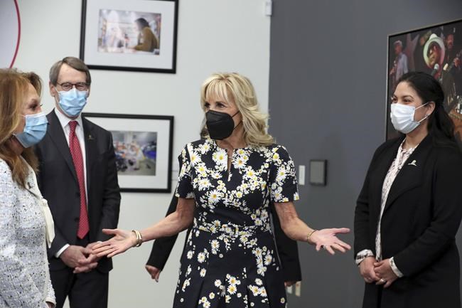 MEMPHIS, Tenn. (AP) — First lady Jill Biden traveled to St. Jude Children’s Research Hospital in Tennessee on Friday to meet with Ukrainian children with cancer and their families fleeing the war and seeking treatment in the U.S.