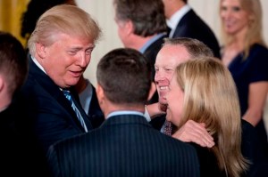 Red America came to celebrate Trump in a decidedly blue city, where 96 per cent voted against him — as several protest signs made sure to point out. There were bemused glances from the locals, and the occasional verbal joust, as red Trump ballcaps and camouflage coats suddenly appeared in town.