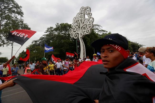 The event was held in place of a traditional march in the city of Masaya that had been celebrated for 38 straight years to commemorate Sandinista resistance to the former Somoza dictatorship. The march was called off this year because much of the city is in open rebellion against Ortega’s government.