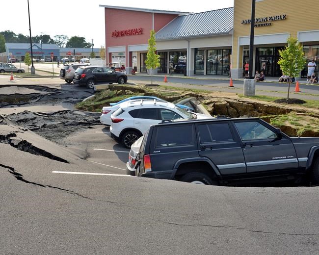 LANCASTER, Pa. – Six cars are trapped by a sinkhole that’s opened up in the parking lot of a Pennsylvania outlet mall.