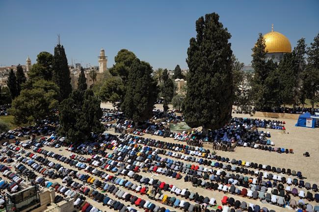 JERUSALEM – Tens of thousands of Muslim worshippers gathered at a sacred Jerusalem plaza for the first Friday prayers of Ramadan after coronavirus lockdowns kept the site off-limits last year.