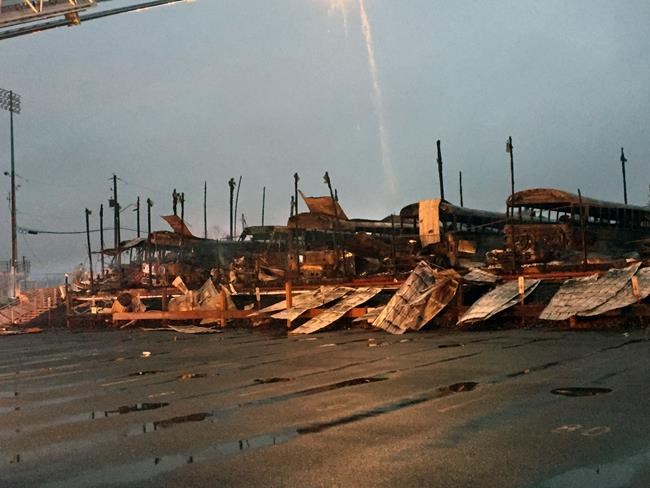 The 25 destroyed or damaged buses represent about 25 per cent of the district’s fleet. No injuries were reported, and the cause of the fire remained under investigation.