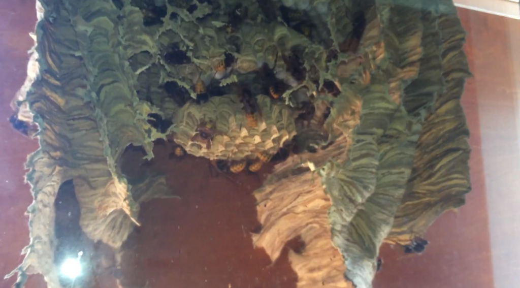 Vang Tsal found a wasp nest teeming with the creepy, crawly insects nest on the outside of his window.
