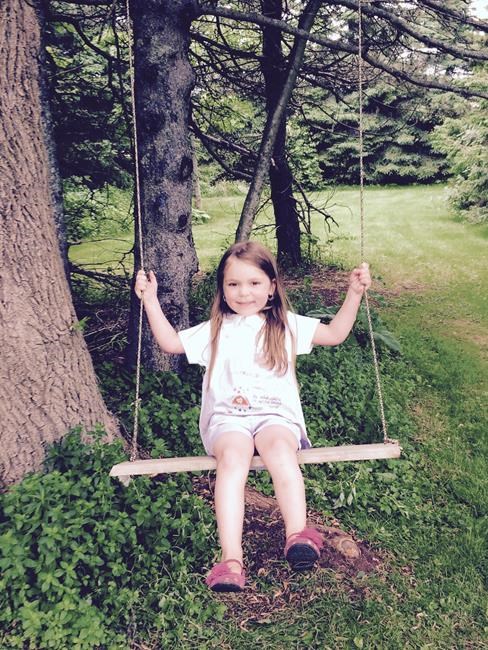 Ella Hurry was jumping on a trampoline Sunday in Wheatley River, P.E.I., when high winds carried the trampoline across the yard, tearing the clothesline off a pole and landing on her.