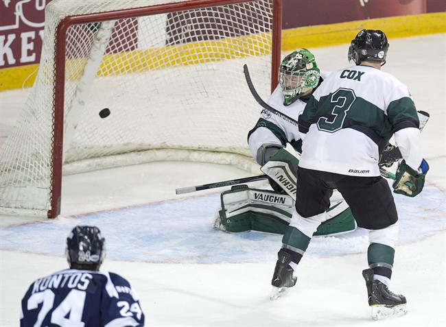 Varsity Reds goaltender Etienne Marcoux made 13 saves for the win. Cole Cheveldave stopped 28-of-32 shots for the Huskies.
