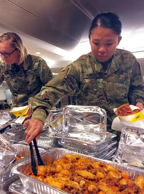 Hundreds of soldiers returning from holiday break to Fort Sill got stuck at Will Rogers World Airport when roads to their Army post in Lawton, Oklahoma, about 80 miles (130 kilometres) to the southwest, became impassible. When word got out, families and public officials donated food. Soldiers got chicken wings Thursday and doughnuts Friday from Oklahoma City Mayor David Holt.
