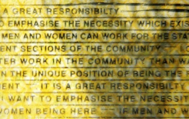 The misspelling appears in an extract from her first speech to the Western Australia state Parliament in 1921.