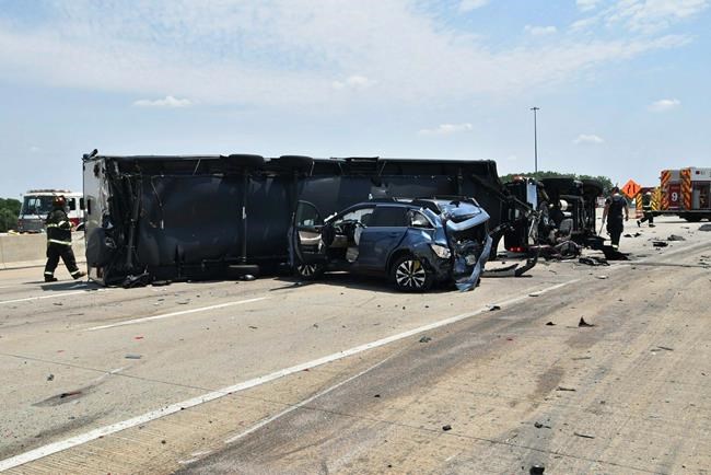 Police say the semi driver, 57-year-old Bruce Pollard of Sturgeon, Missouri, was speeding. He was arrested on preliminary charges including reckless homicide. Court records Monday don’t list a lawyer who can speak on his behalf.