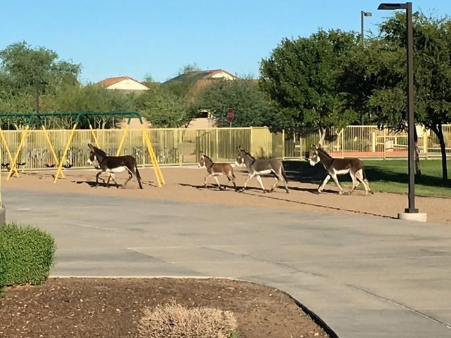 Peoria Unified School District spokeswoman Erin Dunsey says employees saw the burros enter the grounds through a parking lot. The animals then went to the playground and left through a side gate.