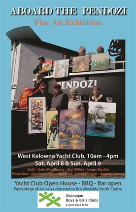 WEST KELOWNA – Nine Professional Okanagan Artists to welcome you at the West Kelowna Yacht Club during the Club Open House, BBQ and Bar.