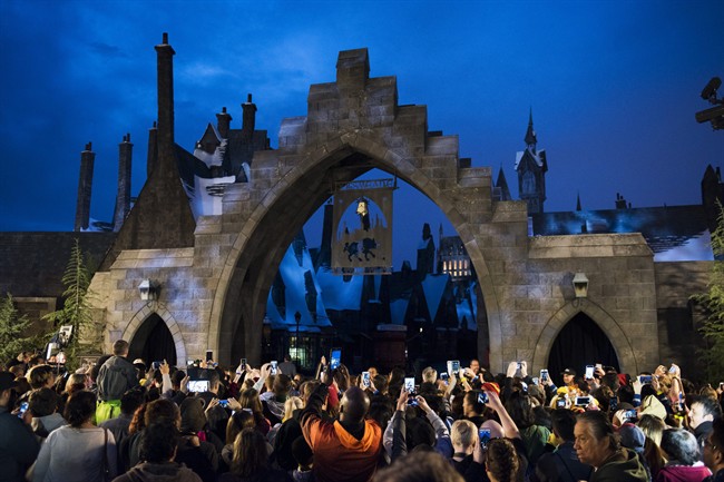 LOS ANGELES, Calif. – A big crowd has turned out at Universal Studios Hollywood for the opening of its new Harry Potter-themed attraction.