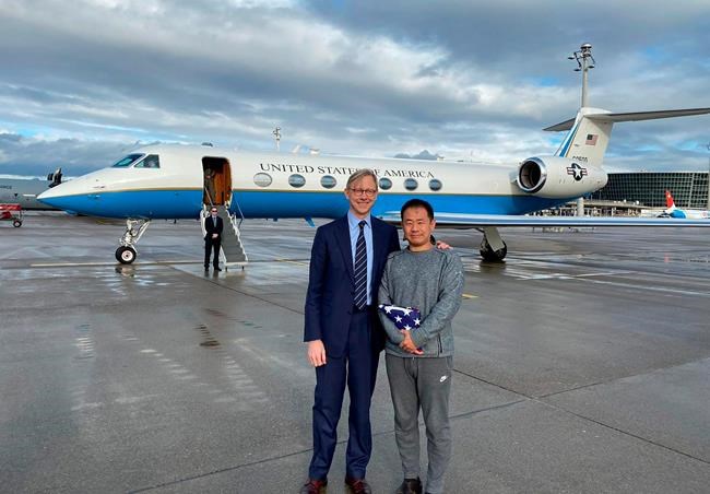 Brian Hook, the U.S. special representative for Iran, accompanied the Soleimani to Switzerland to make the exchange. He later posed for a photograph with Wang, who carried a folded American flag in his arms while wearing gray workout clothes.