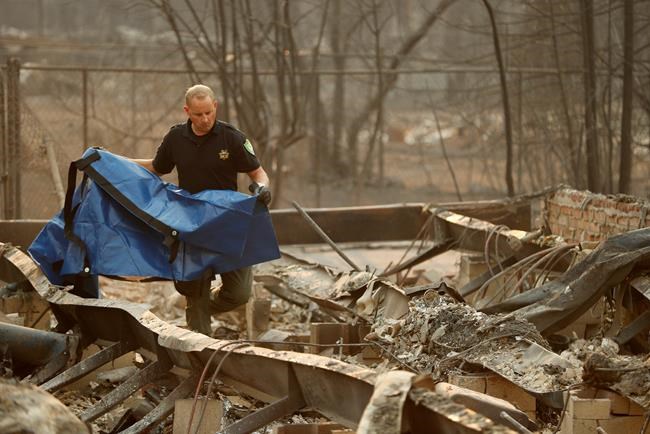 PARADISE, Calif. – As relatives desperately searched shelters for missing loved ones, crews stepped up the search for bodies in the smoking ruins of Paradise on Sunday, loading the remains of at least one victim into a hearse. Wildfires continued to rage on both ends of the state.