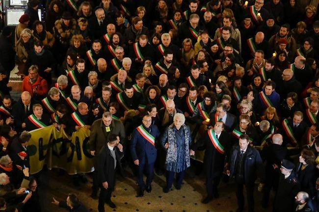 MILAN – A Holocaust survivor who has been put under police protection due to anti-Semitic threats was escorted Tuesday evening through the centre of Milan by hundreds of Italian mayors and thousands of ordinary citizens behind a banner reading: “Hatred has no future.”