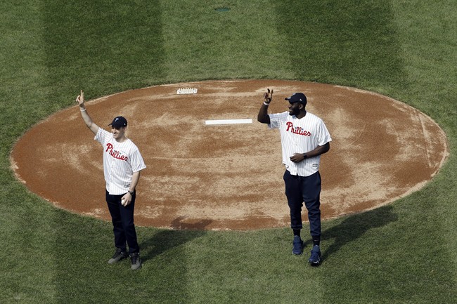 Ryan Arcidiacono and Daniel Ochefu threw ceremonial pitches Monday at the Phillies home opener. Arcidiacono practiced during the day with a graduate assistant so his fastball would zip across the plate, before lobbing one right to Phillies coach Larry Bowa.