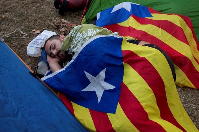 The demonstration began Thursday morning outside the headquarters of Catalonia’s judiciary body in Barcelona. It attracted several thousand people and some 100 camped overnight.
